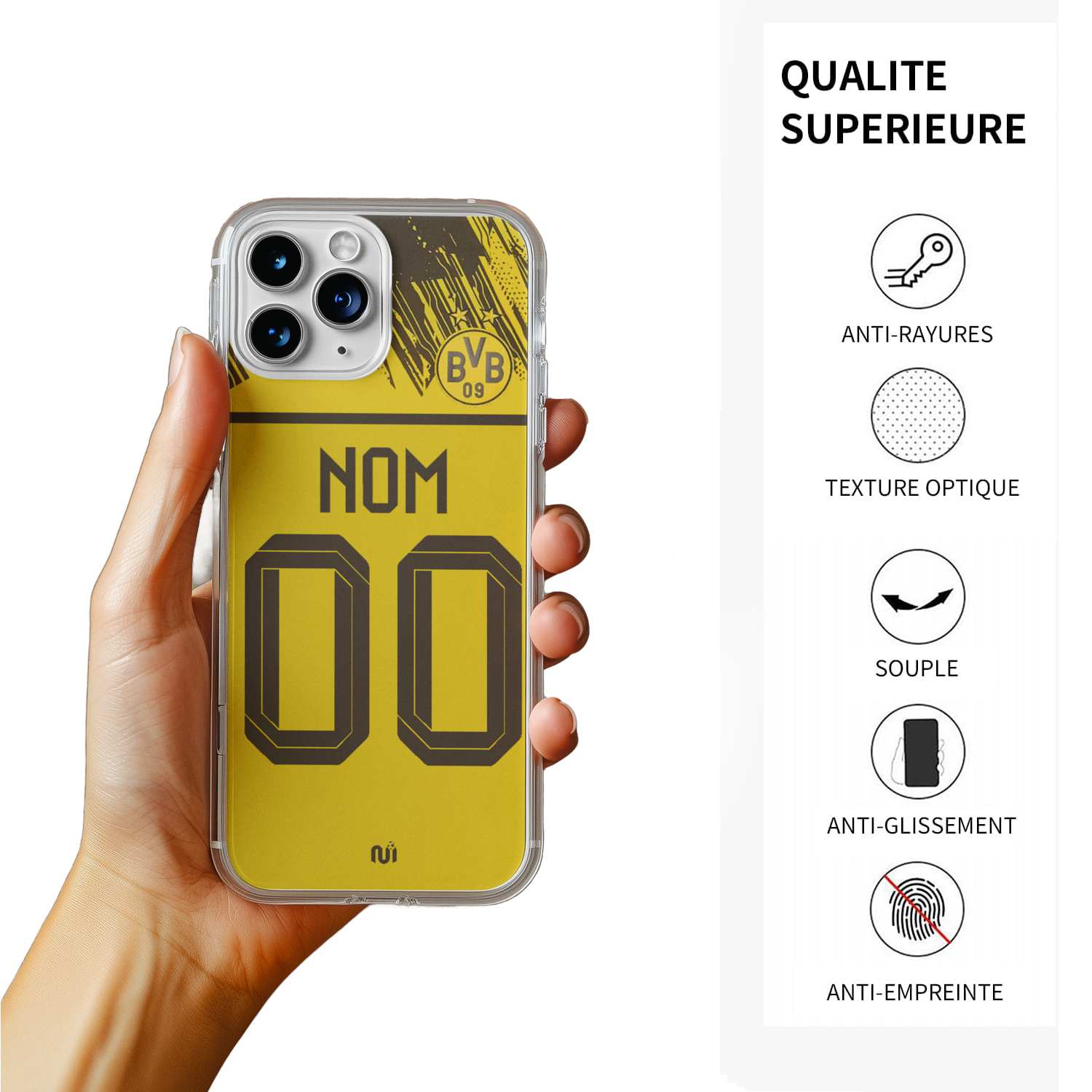 Imaginez votre téléphone floqué à votre nom avec le numéro 11 ou 9, dans le style officiel Dortmund.